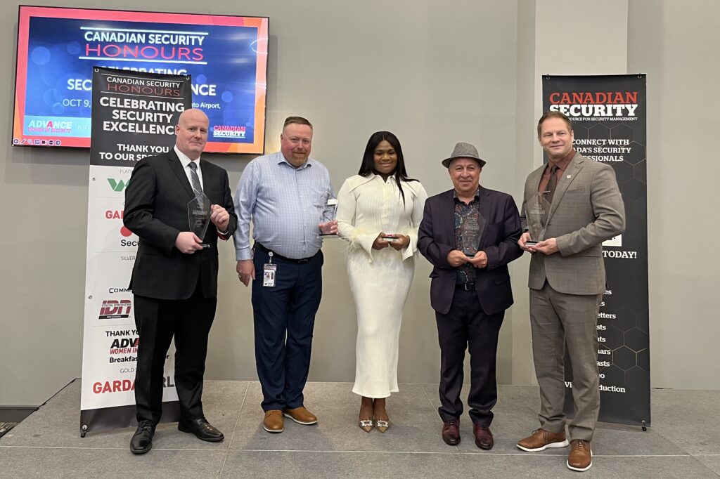 From left: Grant Lecky, Brad Stewart, Kelly Onu, AlaaAldin (Aladdin) AlRadhi, Barry Pitcher Canadian Security hosted the eighth annual Canadian Security Honours gala and second annual Advance: Women in Security Breakfast on Oct. 9, bringing the security industry together to connect with friends and colleagues, share knowledge and best practices, and celebrate award recipients.