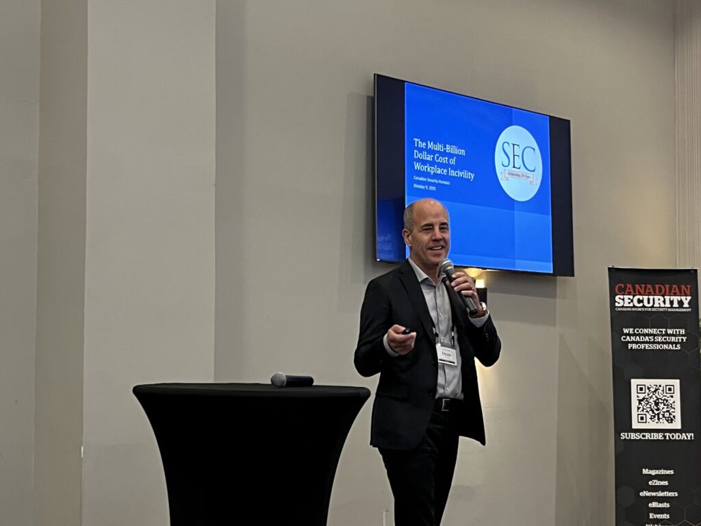 The Canadian Security Honours lunchtime keynote address was provided by Dean Correia, emeritus faculty, business continuity lead, Security Executive Council (SEC). Correia presented some of the SEC’s latest research in a session called “The Multi-Billion Dollar Cost of Workplace Incivility.” Correia spoke about some of the global trends in manners, micro-aggressions, harassment and discrimination, and how human behaviour affects security professionals today.